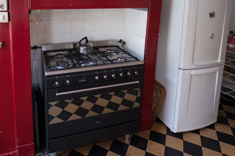 Beneden is er een grote keuken met grote eettafel, een ruime hall en een zitkamer met leren fauteuils en open haard. Ook een piano is aanwezig. De ouderwetse keuken biedt ruimte om met het hele gezelschap te eten en is voorzien van alle gemakken, inclusief fornuis met zes gaspitten en grote oven, een groot formaat ijskast, afwasmachine, magnetron en Nespresso-apparaat. Ook aan de tafel in de hall kan worden gedineerd.